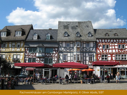 Mit dem großzügig angelegten Kneipp-Kurpark, mit der wunderschönen historischen Altstadt und ihren gut erhaltenen und liebevoll sanierten Fachwerkhäusern oder den vielen unterschiedlichen Fachgeschäften und Gastronomiebetrieben präsentiert sich Bad Camberg als alte und doch moderne Stadt. (Quelle: www.bad-camberg.de)