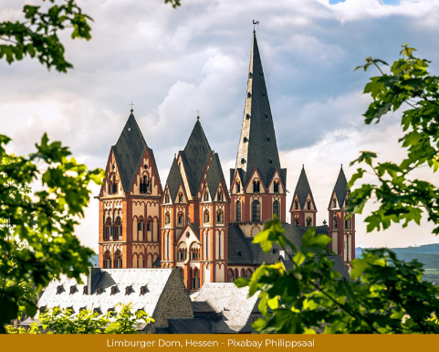 Der Limburger Dom, auch Georgsdom genannt, liegt oberhalb der Altstadt neben der Burg Limburg. Durch seine hohe Lage oberhalb der Lahn ist der Dom weithin sichtbar. Die Basilika gilt als eines der höchsten vollendeten Bauwerke der Spätromanik. Die ursprüngliche Kirche wurde vermutlich ab dem Jahre 910 gebaut. Der Bau des heutigen Doms begann zwischen 1175 und 1200.