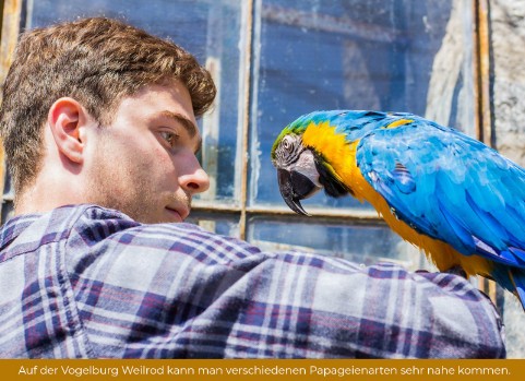 Die Vogelburg, mitten im Naturpark Hochtaunus gelegen, ist ein Vogelpark ganz besonderer Art. Sie verdankt ihre Entstehung und permanente Weiterentwicklung seit 1981 der Initiative eines Vogelliebhabers, der sich aus familiärer Tradition schon seit Jahrzehnten der Pflege von Papageien widmet. Im Laufe der Jahre entwickelte sich dieser Park zu einer Schutzburg für Papageien, die von privaten Haltern aus den unterschiedlichsten Gründen abgegeben wurden.
